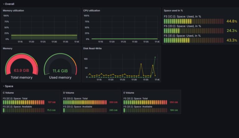 - Grafana used to create comprehensive dashboards for real-time monitoring.